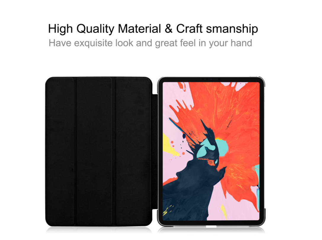 s iPad® Pro 12.9" 2018 3-Panel Easel Case! Made of high end artificial leather; this case is as stylish as it is protective! Shield your device from scratches by slipping it into this case. The magnetic sleeper mode will help your device conserve energy and extend the life of your battery. The easel-style stand makes viewing a breeze. Customize this case with your logo to increase brand awareness! Order now!
